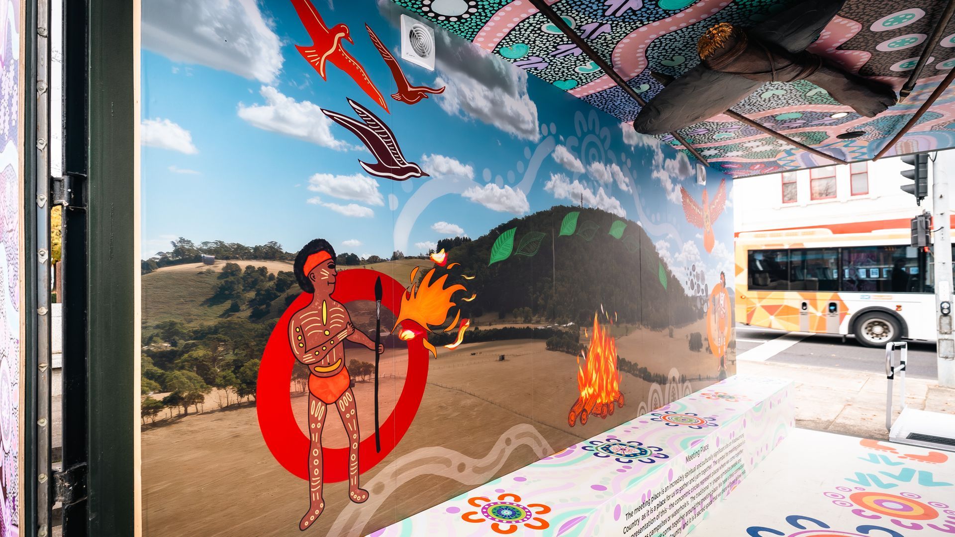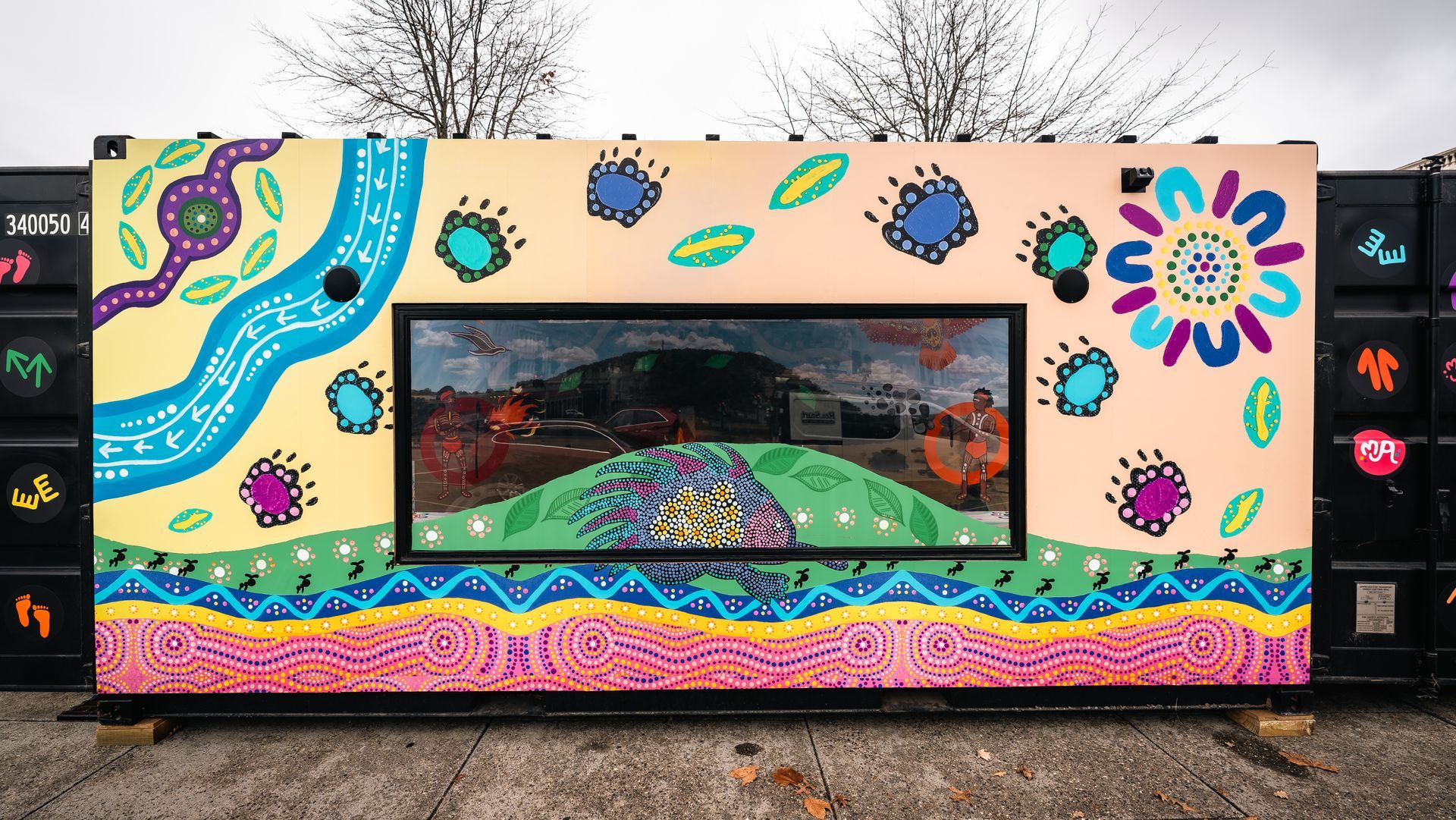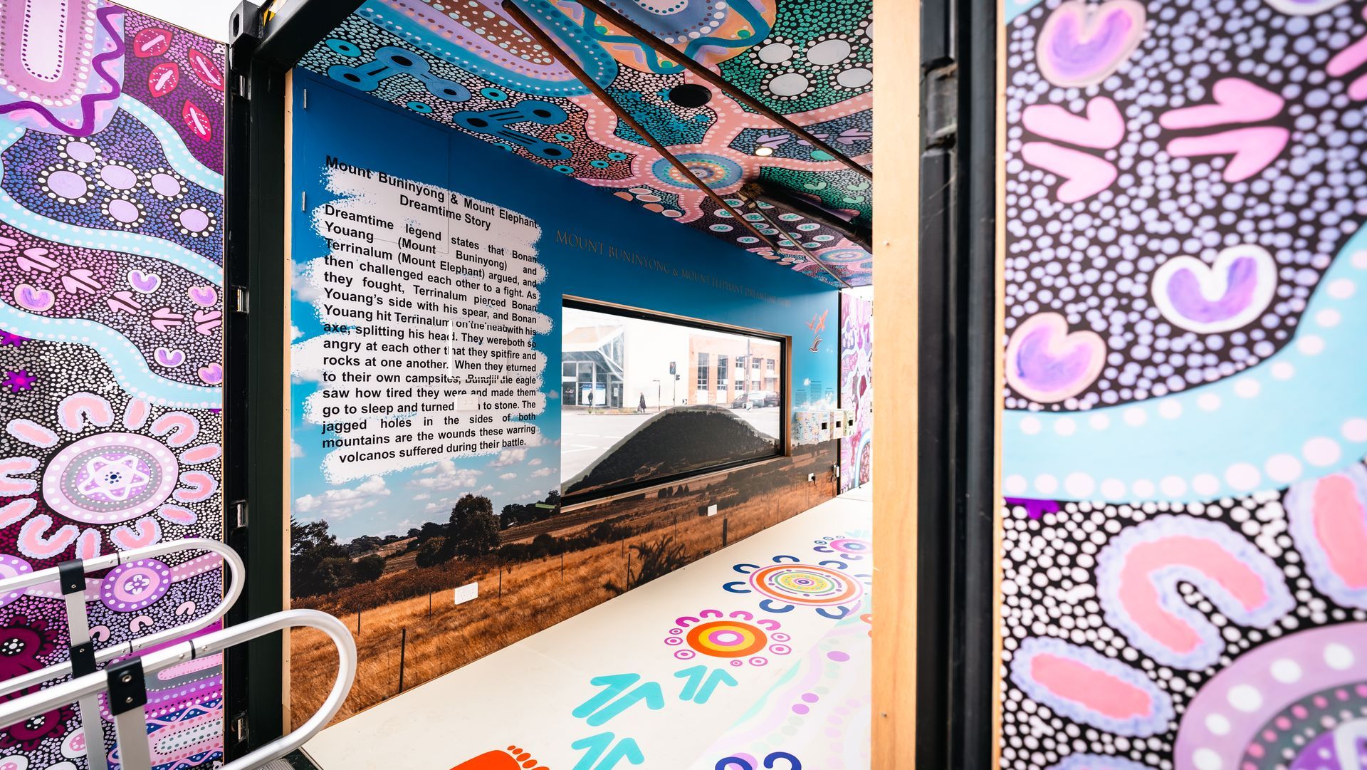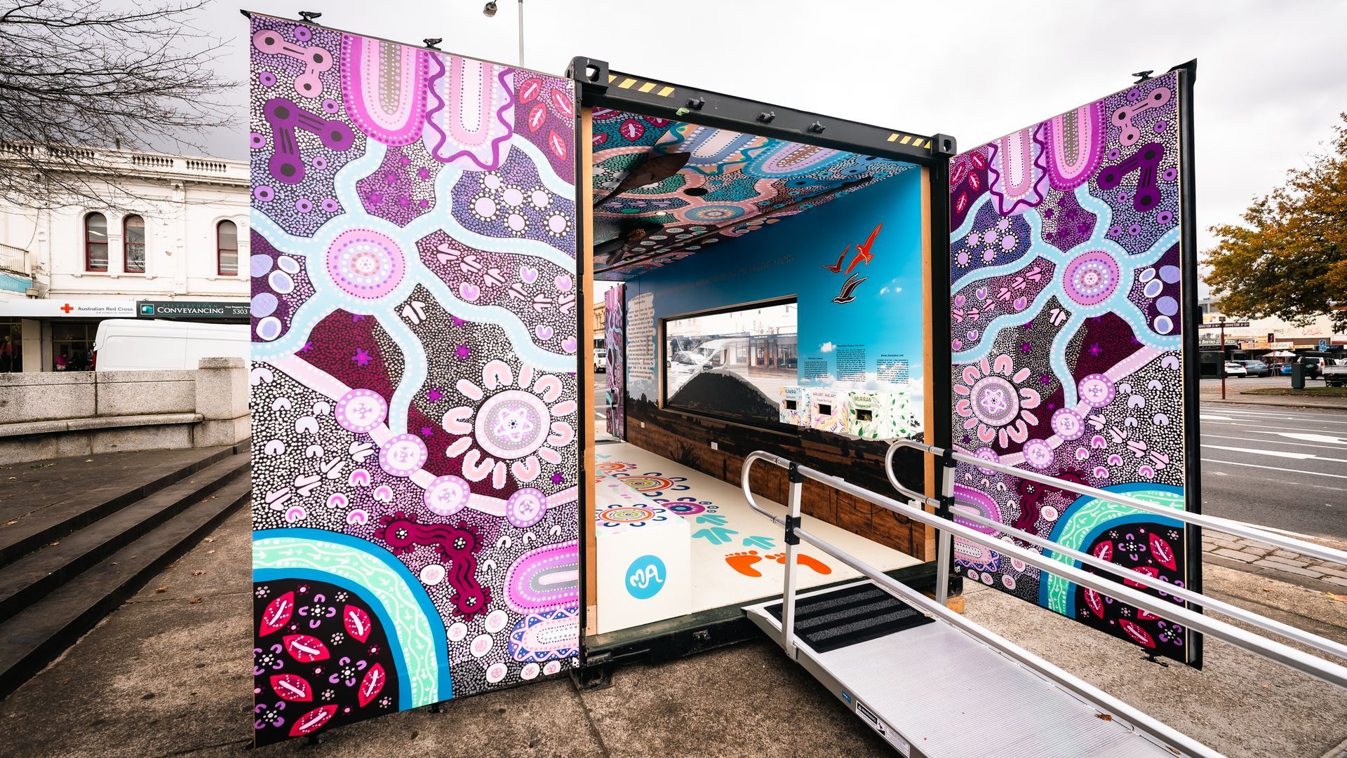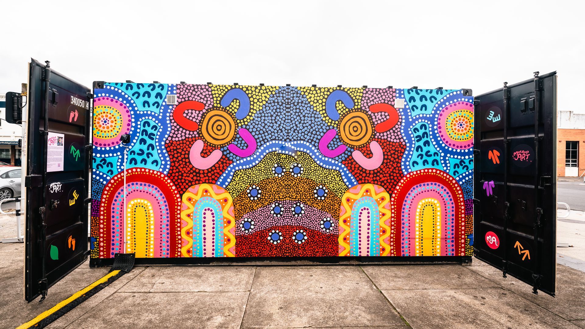 Commissioned by the City of Ballarat, we just completed this extraordinary project for the Ballarat Heritage Festival! We had the privilege of wrapping this container inside and out with the incredible work of Wadawurrung artist Jenna Oldaker.