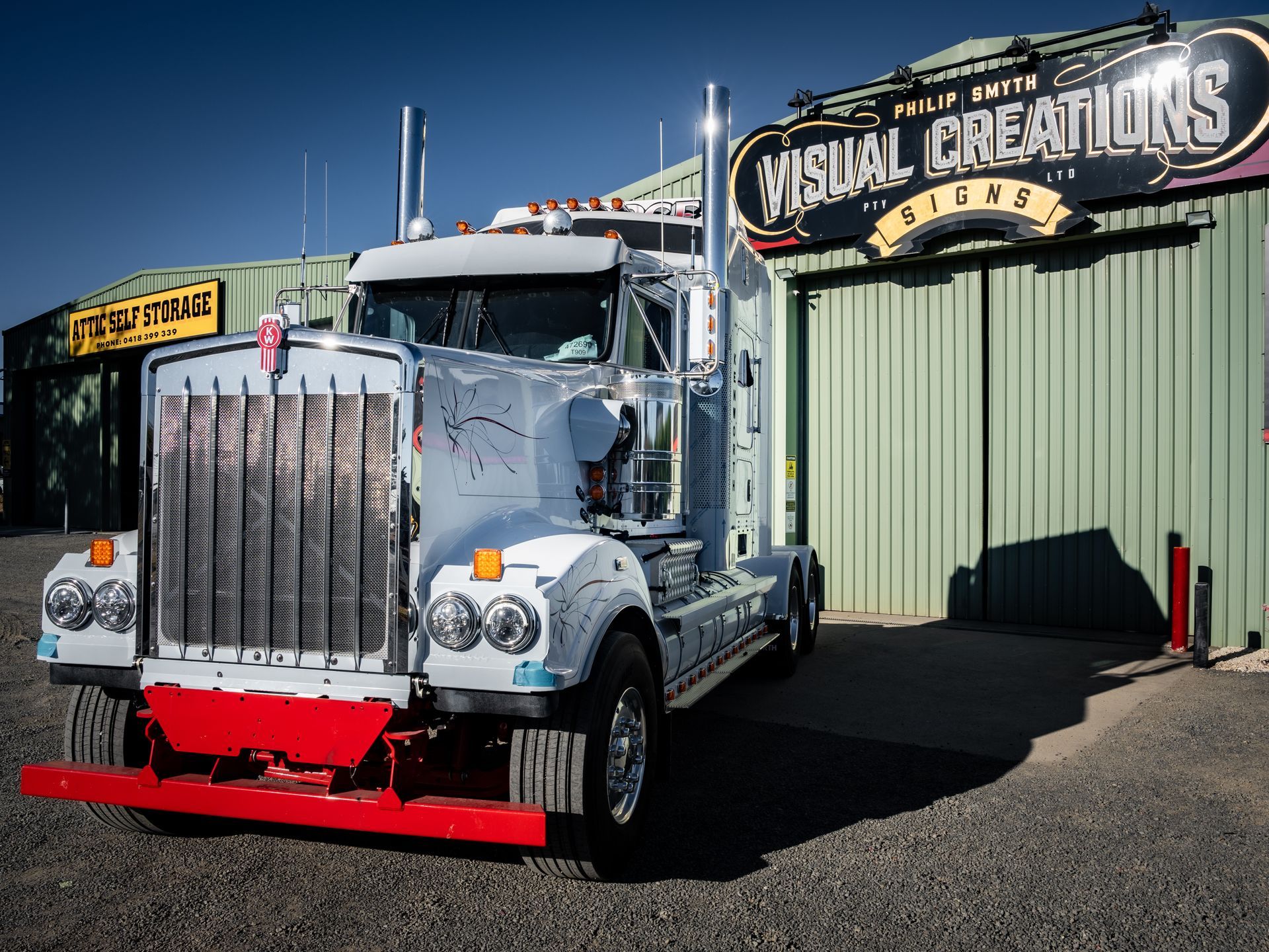 Recently completed hand-painted T909 for George Transport - Lake Goldsmith. Featuring precise hand-painted lines and scrolls.