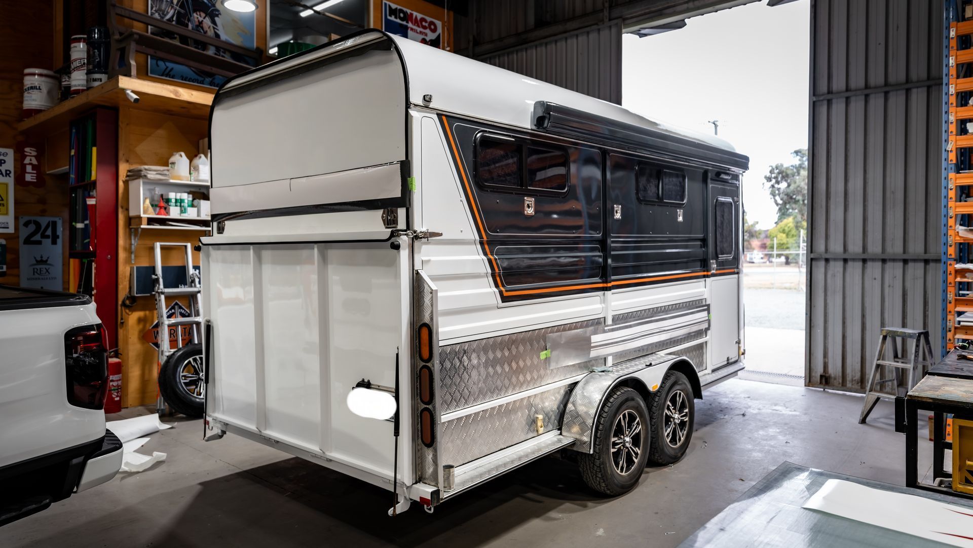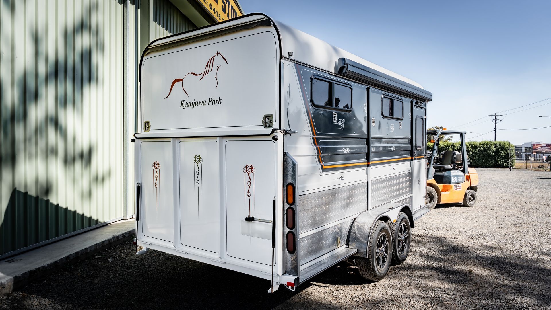 Recently completed this stunning horse float with sleek vinyl lines and scrolls. Horse floats to boats, trucks, tractors, diggers – you name it, we wrap it!